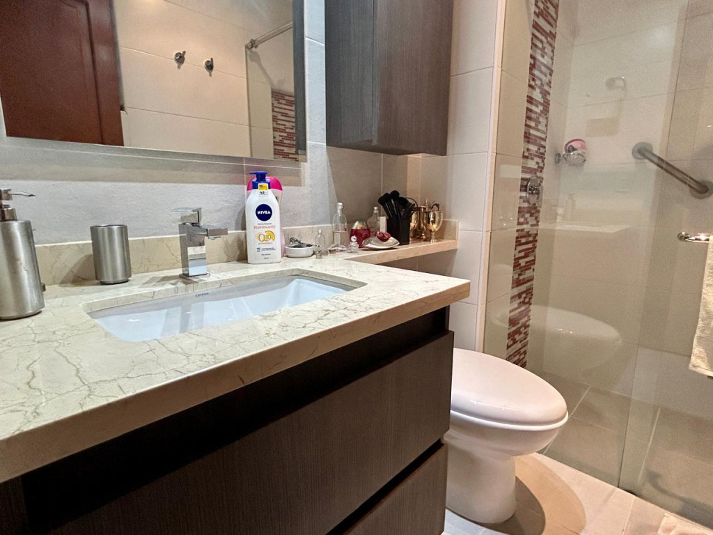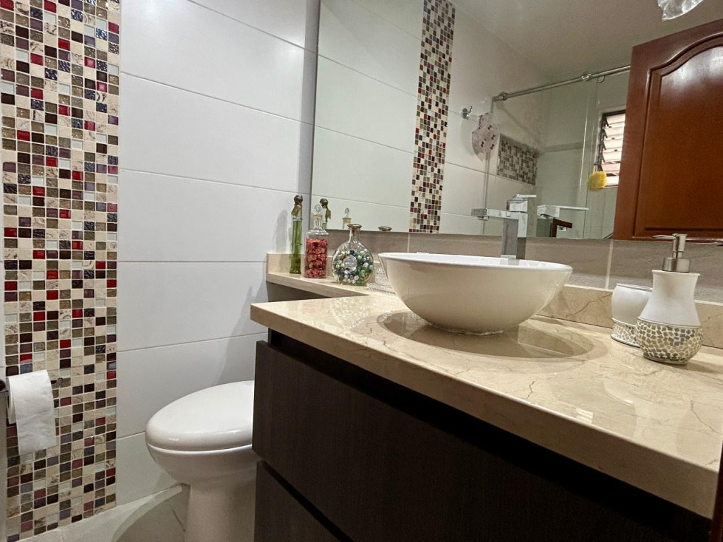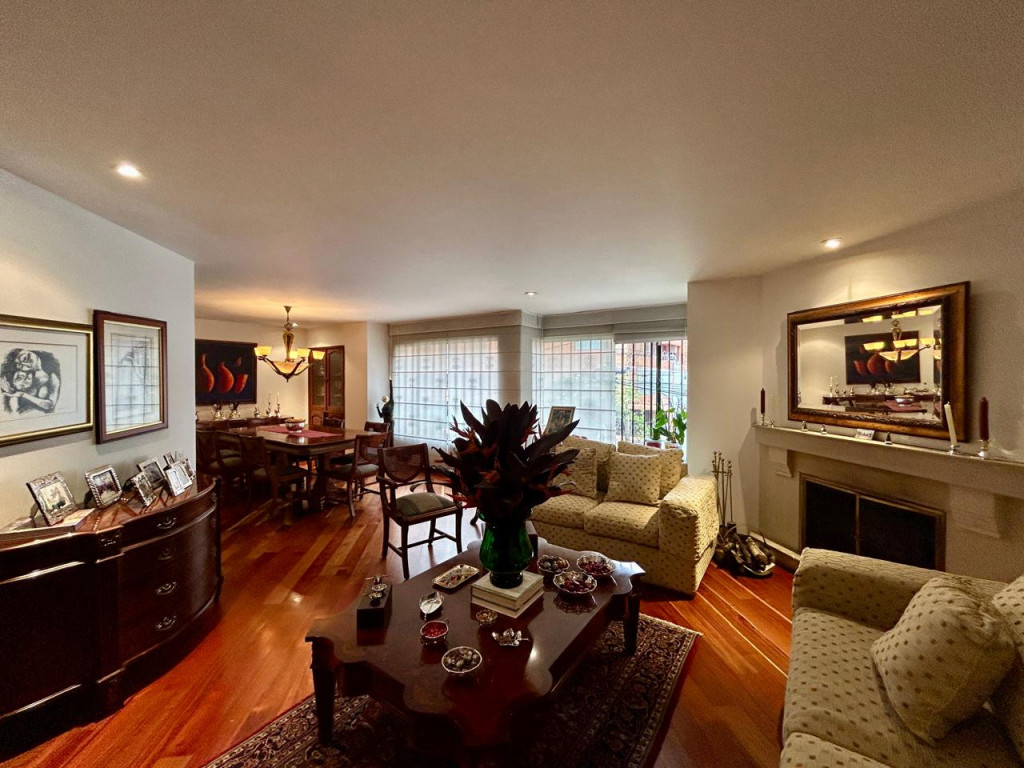 (19847) LINDO APARTAMENTO CON TERRAZA EN CHICÓ NAVARRA. Súper bien ubicado en el lindo sector de Chicó Navarra, en calle tranquila entre la Cra. 19 y la autopista, entre calles 100 y 104, se encuentra este elegante apartamento en segundo piso exterior, sobre carrera, con entrada directa del sol de la mañana. El apto cuenta con baño social, hermosa cocina remodelada con lindos acabados, zona de lavandería independiente y baño de servicio, estudio totalmente independiente, amplia sala comedor con chimenea de leña, family room, tres habitaciones cada una con baño privado. Son 210m2 + 26m2 de terraza cubierta a la que se accede por dos de las habitaciones. Cuenta con 4 parqueaderos cubiertos y depósito. Edificio robusto, muy bien construido, con salón social, zonas húmedas, gimnasio, parque infantil, sala de reuniones, parqueaderos de visitantes y vigilancia 24 horas. Cercanía a sector comercial y bancario, supermercados, zona gastronómica, parques. Facilidad de transporte público.