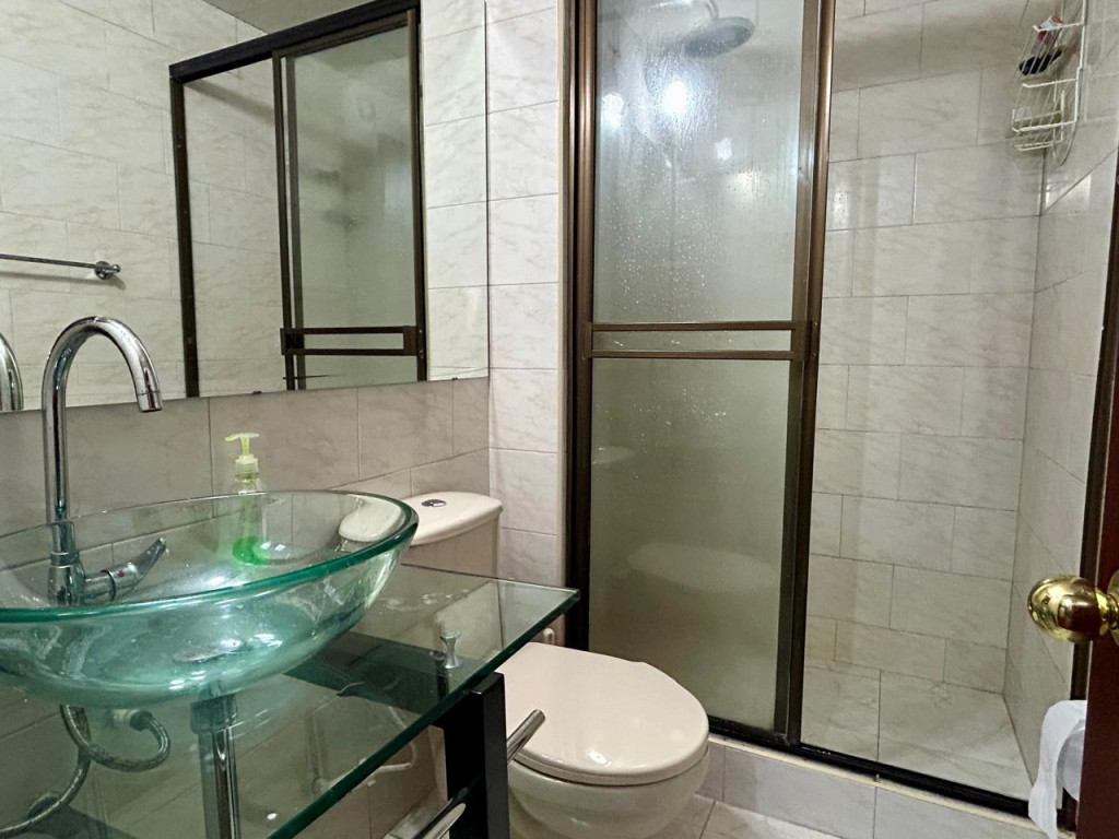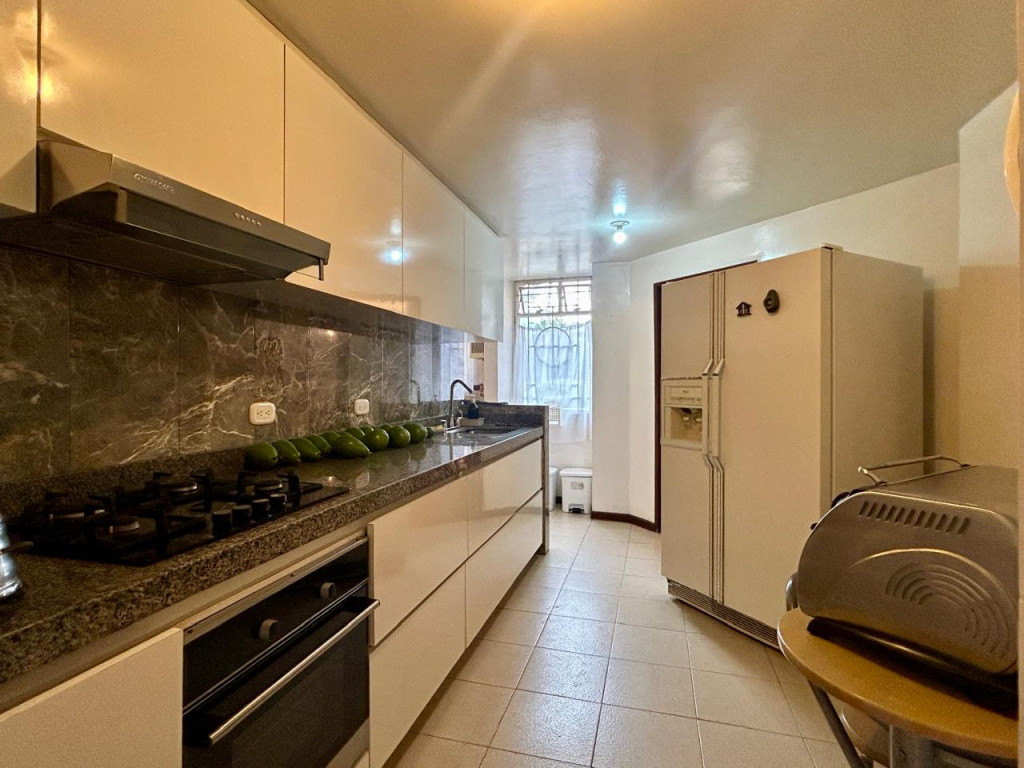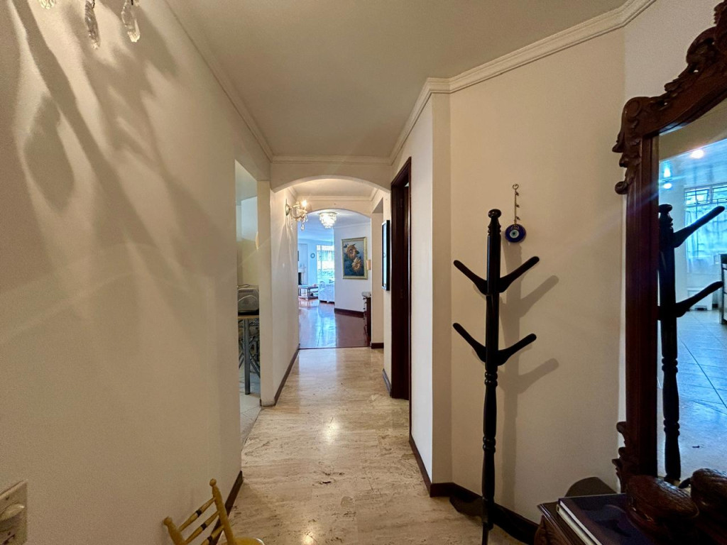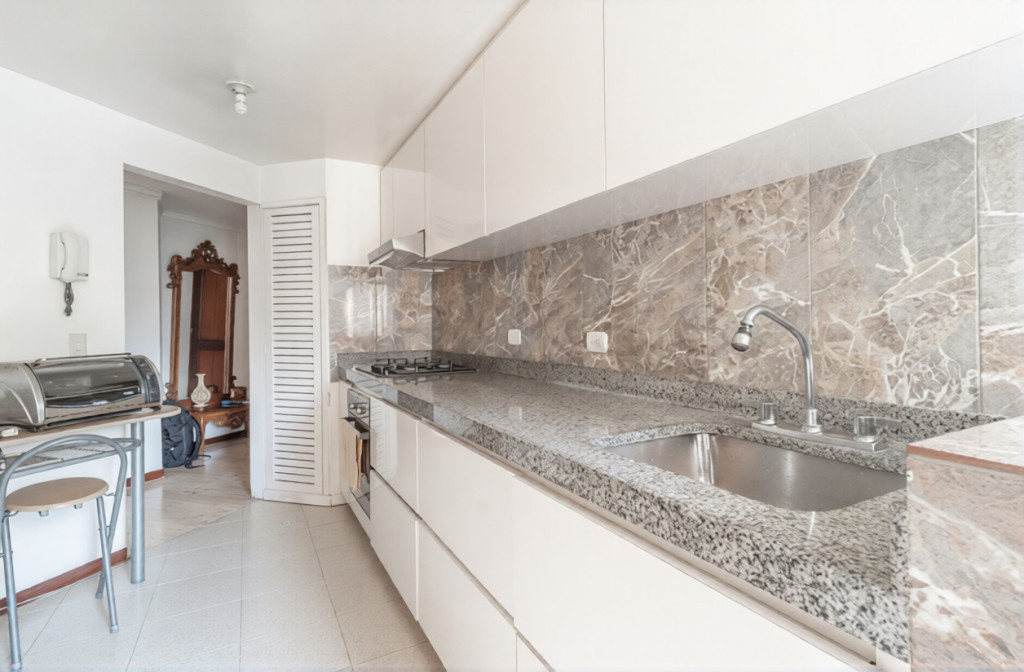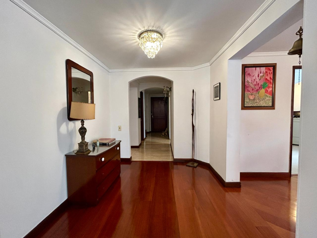 (19848) CLÁSICO APARTAMENTO IDEAL PARA RENOVAR A SU GUSTO EN SANTA PAULA. Ubicado en un primer piso exterior, con buena entrada de luz natural y sol directo de la mañana, encontramos este apartamento en un edificio bien mantenido, de 16 apartamentos. Son 165m2 construidos + 50m2 de terraza. Al entrar encontramos un recibidor, seguido por baño social y acceso a la cocina por una lado, y a la zona social por otro. La cocina es cerrada, muy ventilada, con amplia zona de lavandería y cuarto y baño de servicio. La sala y comedor son independientes. Tiene un estudio de buen tamaño, independiente y con salida a la terraza. Cuenta con 3 habitaciones de muy buen tamaño, la principal con vestier y baño y otro baño que comparten las dos alcobas auxiliares. Lo complementan dos parqueaderos cubiertos en línea y un depósito. El edificio cuenta con salón comunal, parqueadero de visitantes y vigilancia 24 horas. Vías de acceso como la cra. 9, cra. 11, cra. 15, cra. 19 y autopista. calle 100, calle 104 y calle 106. Cercanía a supermercados, droguerías, sector comercial y bancario de la cra. 15, Unicentro. Facilidad de transporte público .