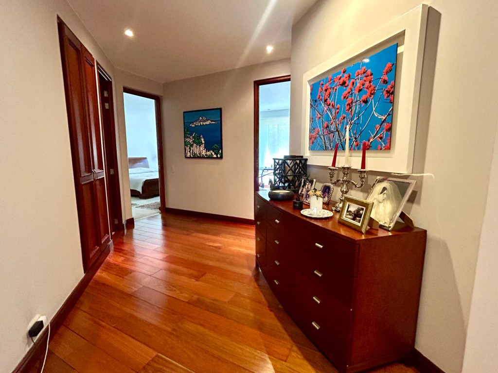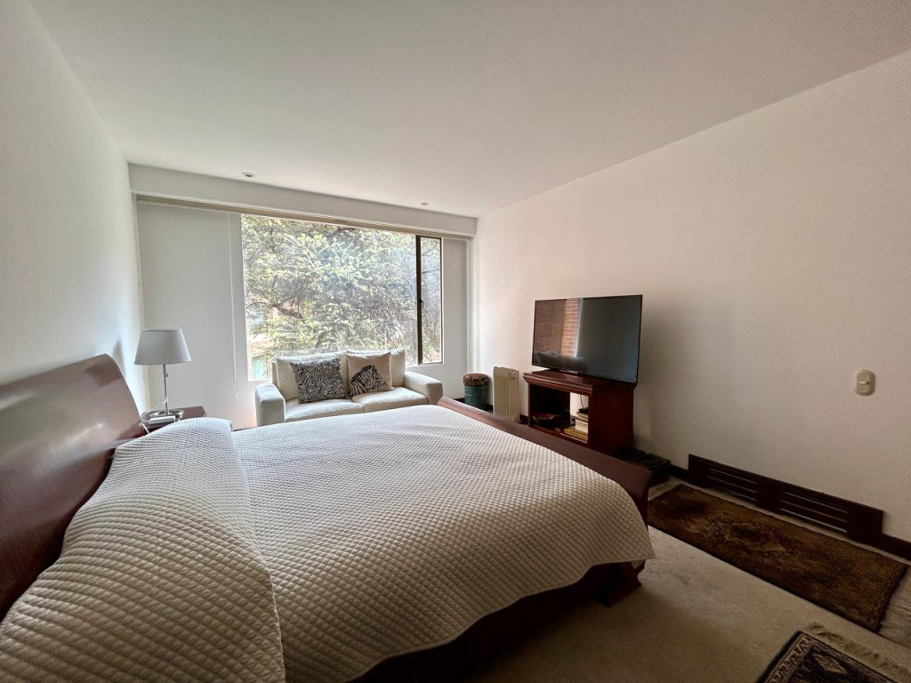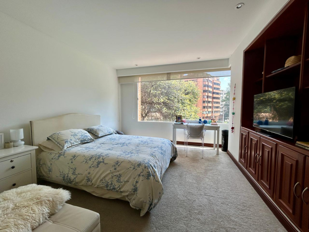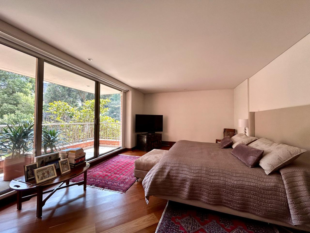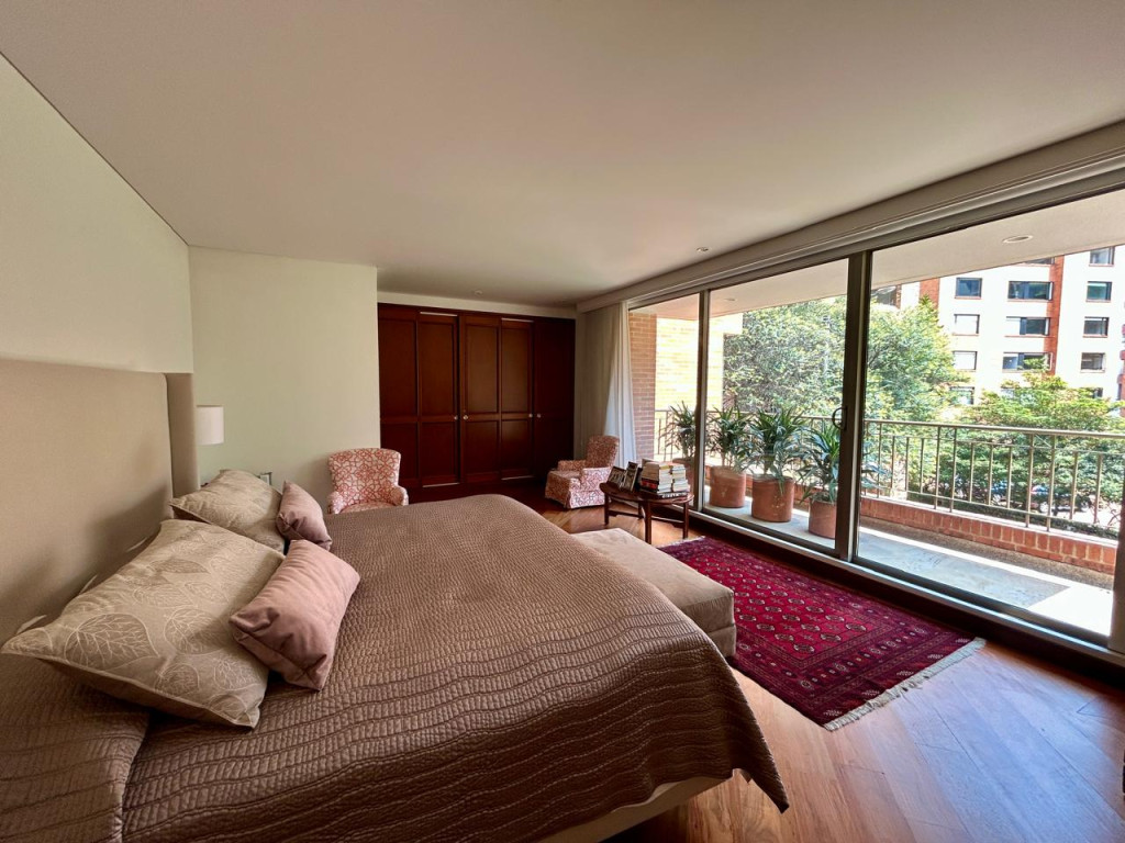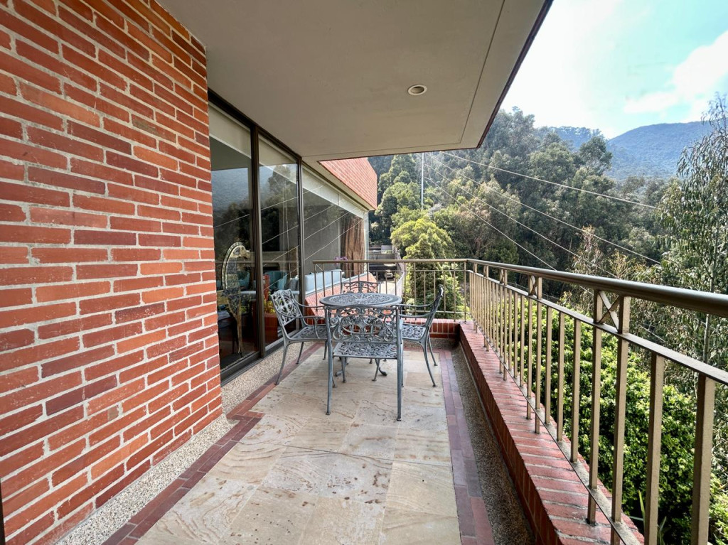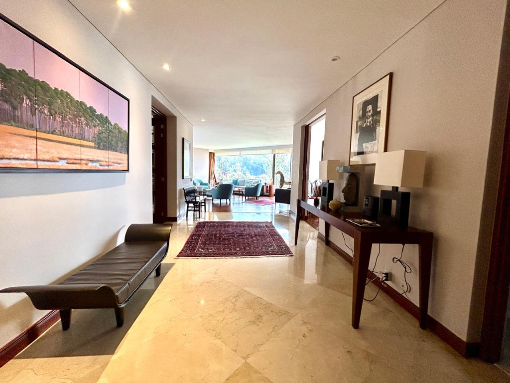 (19833) ESPECTACULAR APARTAMENTO CON VISTA 360 GRADOS EN CHICÓ ALTO. Con una ubicación privilegiada en Chicó Alto, en la zona conocida como la raqueta, encontramos este maravilloso apartamento en quinto piso totalmente exterior, con vista hacia la ciudad y también hacia parque. Amplísimos espacios maravillosamente distribuidos, con excelente entrada de luz natural en todos sus espacios. Sala con chimenea funcional, comedor independiente con salida a una terraza con vista hacia Bogotá, cocina cerrada muy ventilada con zona de lavandería independiente y cuarto y baño de servicio. Estudio muy amplio totalmente independiente con chimenea funcional. Baño social. Cuatro habitaciones, dos de ellas con baño privado. La principal con amplio walking closet y salida a terraza con vista a parque. Dos de las habitaciones auxiliares comparten un baño. Cuenta con tres parqueaderos y depósito. Edificio robusto con vigilancia 24 horas, salón social, gym, squash, sauna y turco y parqueaderos de visitantes. Zona muy tranquila con vías de acceso como la av. Circunvalar, cra. 7, calle 85 y calle 94. Facilidad de transporte público.