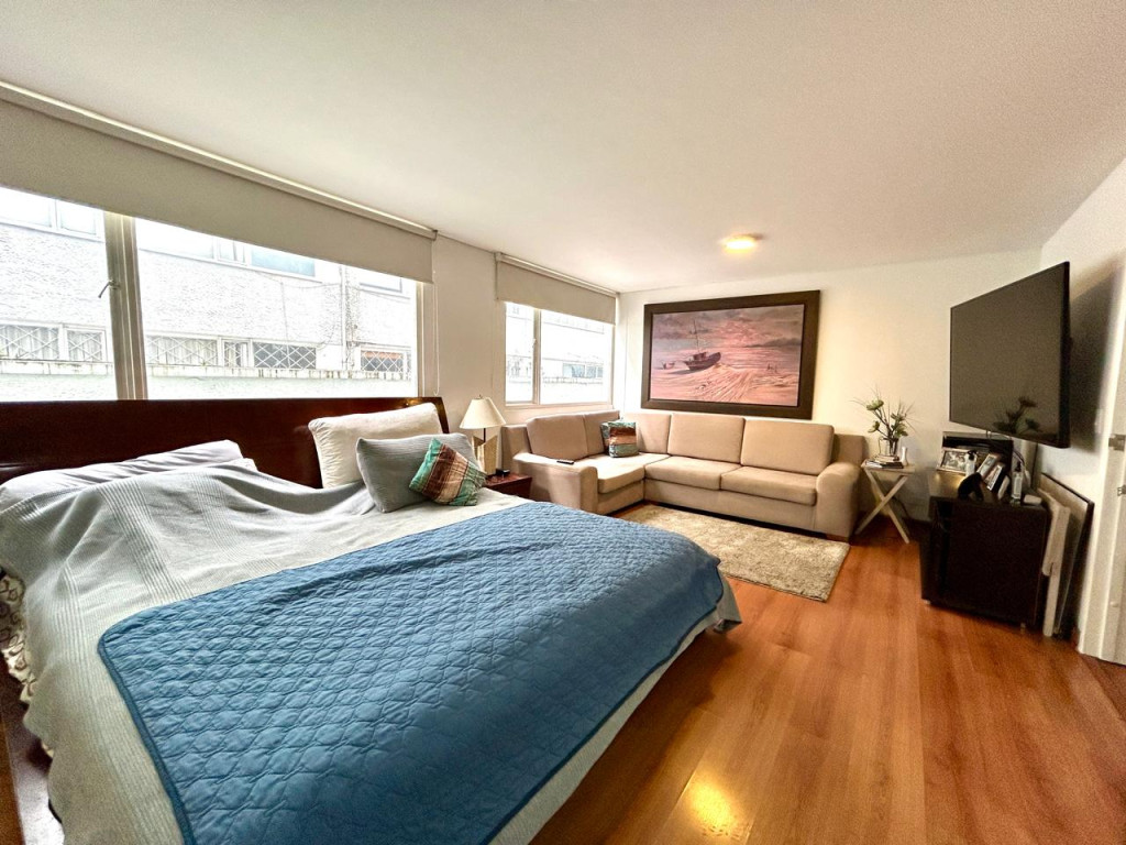 (19828) APARTAMENTO REMODELADO EN EL CHICÓ. Oportunidad de vivir en una de las zonas más exclusivas de Bogotá. Apartamento en edificio clásico en la calle 91 con 19, ubicado en primer piso interior, con buena entrada de luz natural. Remodelado. Con amplia zona social con chimenea, cocina abierta, estudio independiente, baño social, tres habitaciones, la principal muy grande, con baño privado, y otro baño para las alcobas auxiliares. Dos parqueaderos independientes. Edificio con vigilancia 24 horas. Cercanía al parque de la 93, parque el Virrey, clínica de la Mujer. Vías de acceso como la autopista norte, calle 92, calle 90, Cra. 15.