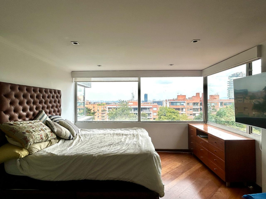 (19836) LINDO APARTAMENTO CON ESPECTACULAR VISTA EN EL CHICÓ. Ubicado sobre la carrera 7 con 89, en un edificio clásico, se encuentra este apartamento remodelado, con excelente vista hacia el occidente de la ciudad. Sol directo de la tarde, lo que lo hace caliente y acogedor. Dúplex, en el primer nivel baño social, amplia sala comedor, espacio para estudio, cocina abierta con amplia zona de lavandería. Pequeña terraza cubierta. Segundo nivel, tres habitaciones, cada una con su baño. Complementan el apartamento dos parqueaderos en línea. Edificio con vigilancia 24 horas, entrada peatonal por la Cra. 7 y por la avenida circunvalar. Cercanía al centro Andino, Parque del Chicó y parque de la 93. Excelentes vías de acceso como la calle 94, calle 92, calle 85, Cra 7 y avenida circunvalar. Facilidad de transporte público.