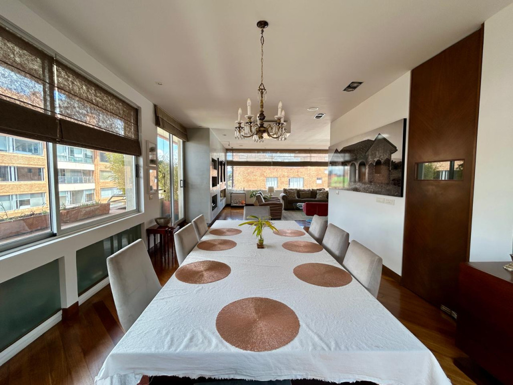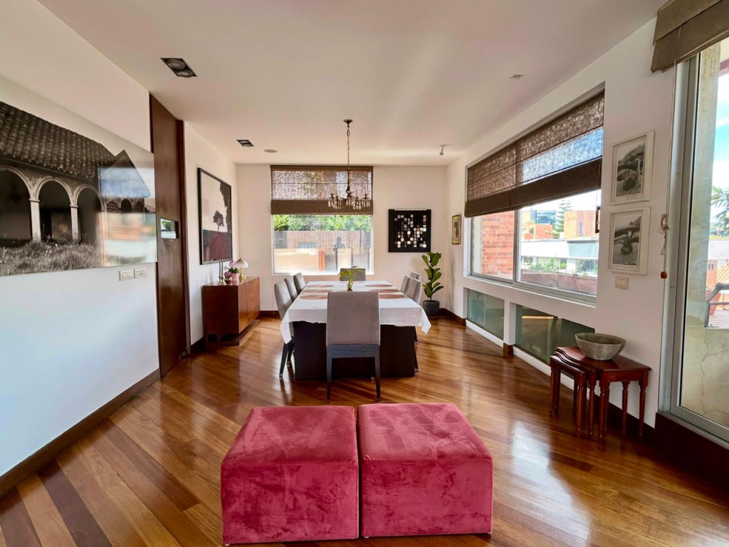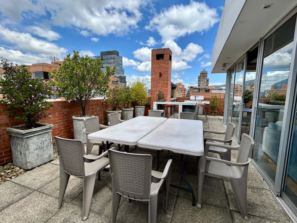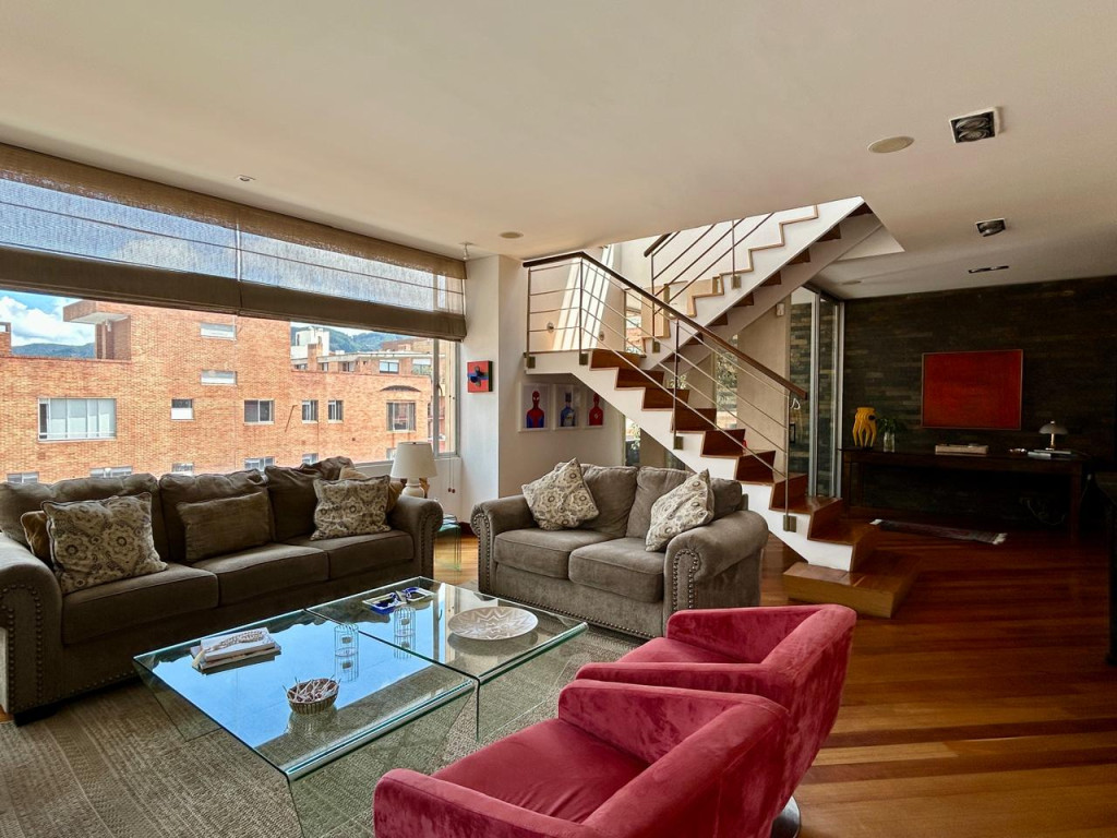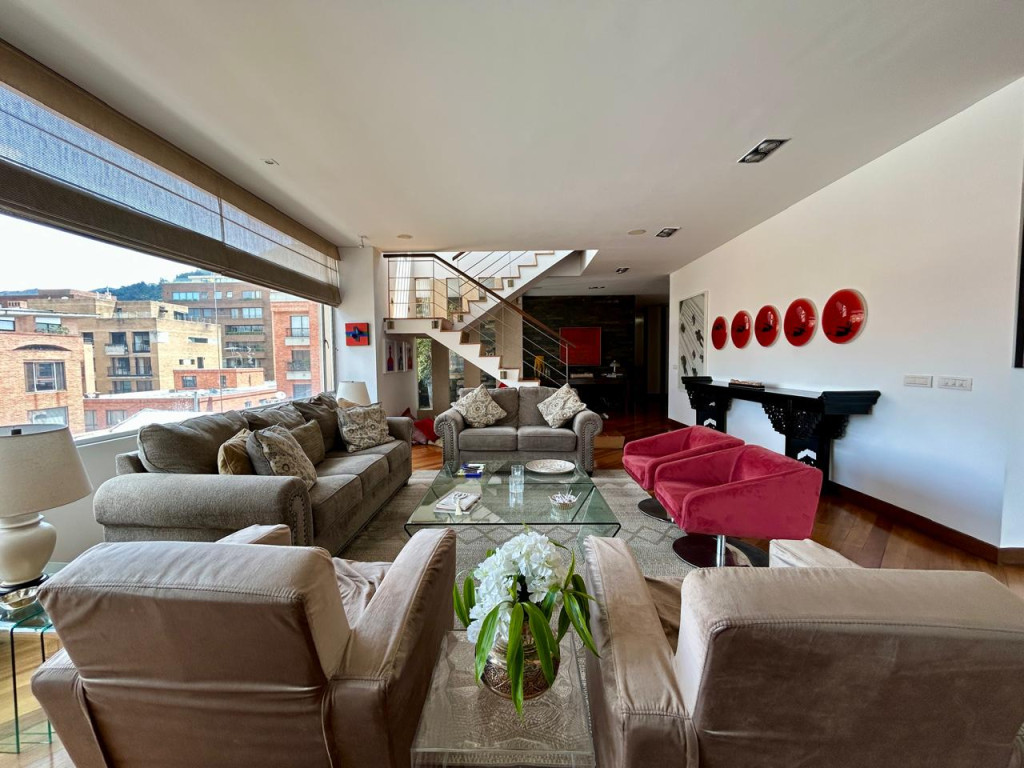 (19847) ESPECTACULAR PENTHOUSE EN EL EXCLUSIVO SECTOR DE LA CABRERA. Lindísimo apartamento totalmente exterior y esquinero en calle muy tranquila, pero a tan solo tres cuadras del parque de la 93. Edificio pequeño y muy privado, de tan solo 9 apartamentos. Vive en uno de los sectores más exclusivos de Bogotá en este penthouse dúplex. Primer nivel: 303m2, amplísima zona social con chimenea, rodeada por un balcón. Cocina cerrada muy funcional con muy buen espacio de almacenamiento y comedor auxiliar. Cuarto y baño de servicio, baño social, amplísimo family room y/o estudio. Cuatro habitaciones de muy buen tamaño, cada una con baño privado. Segundo nivel: tiene 50m2 + espectacular terraza de 60m2, allí encontrarás un espacio de esparcimiento q puedes adecuar a tus necesidades, baño y zona de lavandería totalmente ventilada e independiente. El apartamento cuenta con 4 parqueaderos y 2 depósitos. Edificio con vigilancia 24 horas y parqueaderos de visitantes. Vías de acceso como la Cra. 11, Cra. 7, calle 94, calle 92, calle 90. Cercanía a Centro Andino, Parque de la 93, sector gastronómico y bancario. Facilidad de transporte público.