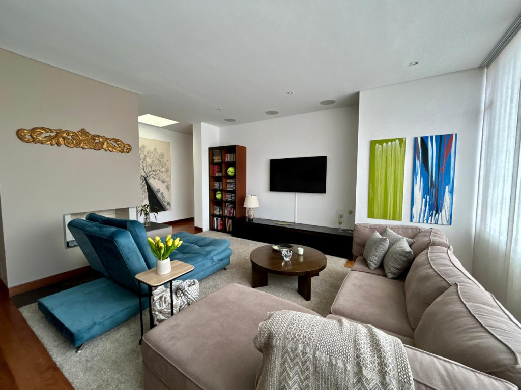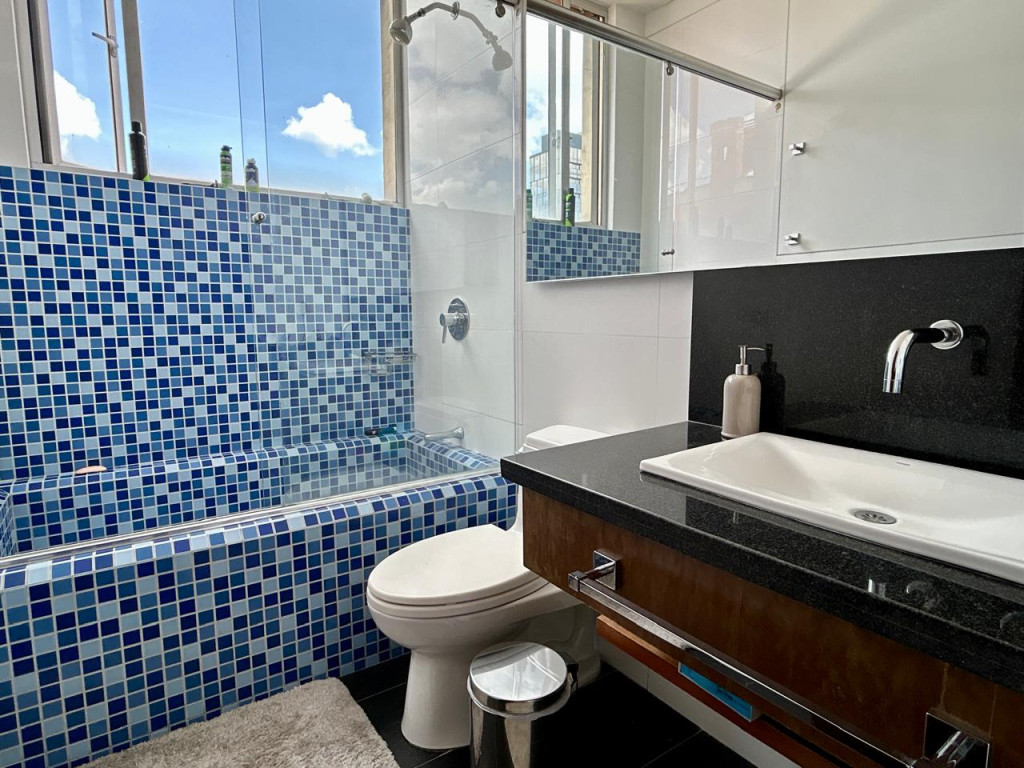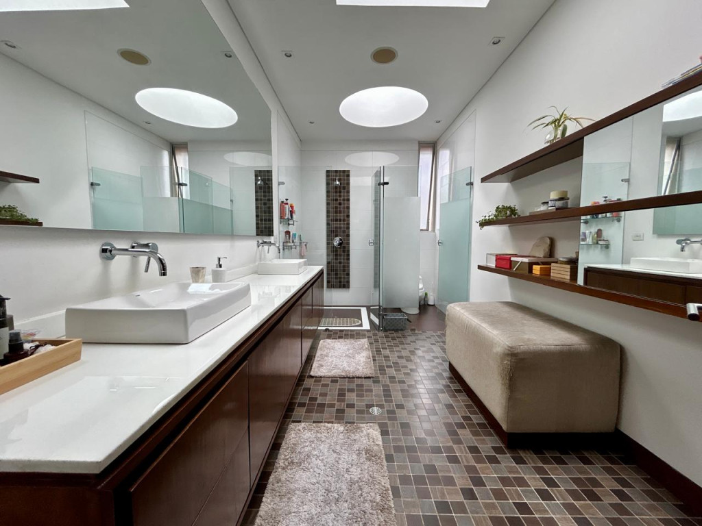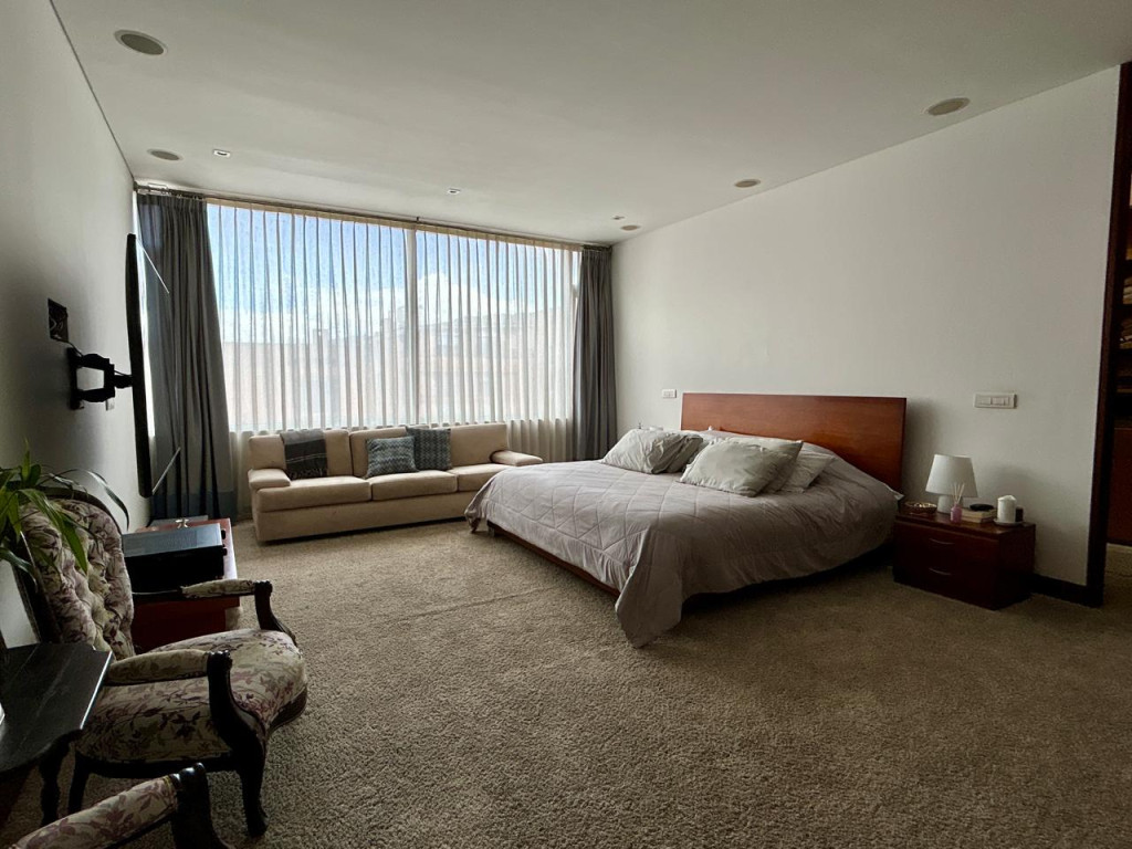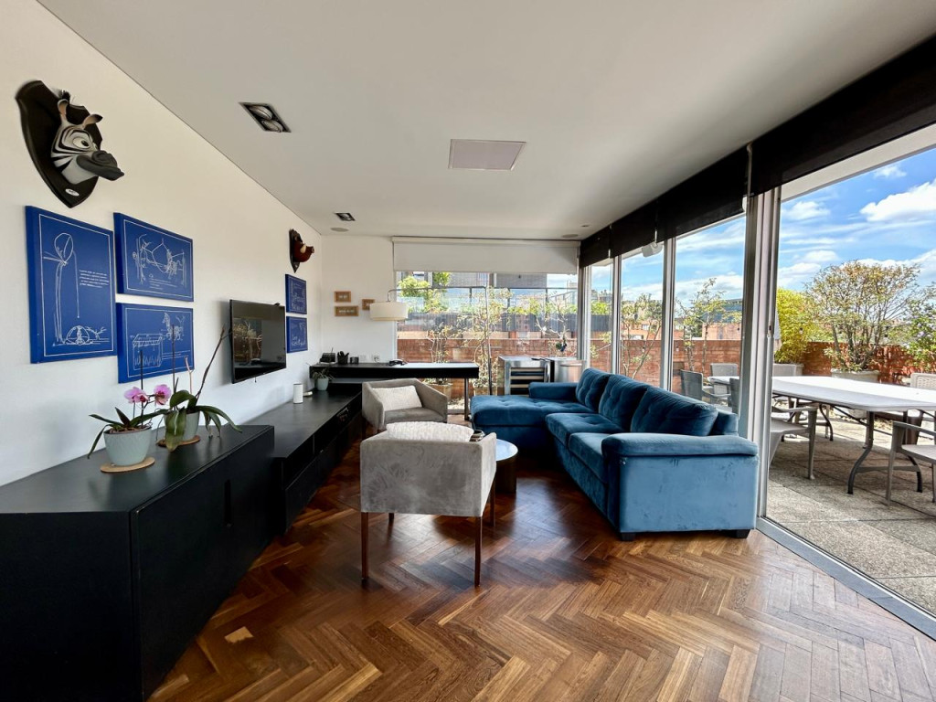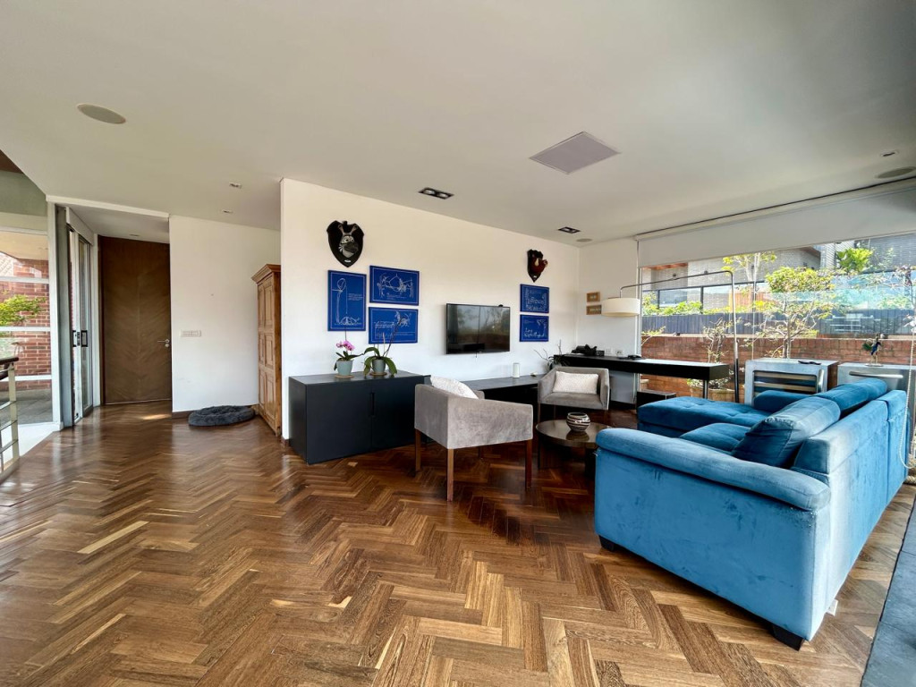 (19847) ESPECTACULAR PENTHOUSE EN EL EXCLUSIVO SECTOR DE LA CABRERA. Lindísimo apartamento totalmente exterior y esquinero en calle muy tranquila, pero a tan solo tres cuadras del parque de la 93. Edificio pequeño y muy privado, de tan solo 9 apartamentos. Vive en uno de los sectores más exclusivos de Bogotá en este penthouse dúplex. Primer nivel: 303m2, amplísima zona social con chimenea, rodeada por un balcón. Cocina cerrada muy funcional con muy buen espacio de almacenamiento y comedor auxiliar. Cuarto y baño de servicio, baño social, amplísimo family room y/o estudio. Cuatro habitaciones de muy buen tamaño, cada una con baño privado. Segundo nivel: tiene 50m2 + espectacular terraza de 60m2, allí encontrarás un espacio de esparcimiento q puedes adecuar a tus necesidades, baño y zona de lavandería totalmente ventilada e independiente. El apartamento cuenta con 4 parqueaderos y 2 depósitos. Edificio con vigilancia 24 horas y parqueaderos de visitantes. Vías de acceso como la Cra. 11, Cra. 7, calle 94, calle 92, calle 90. Cercanía a Centro Andino, Parque de la 93, sector gastronómico y bancario. Facilidad de transporte público.