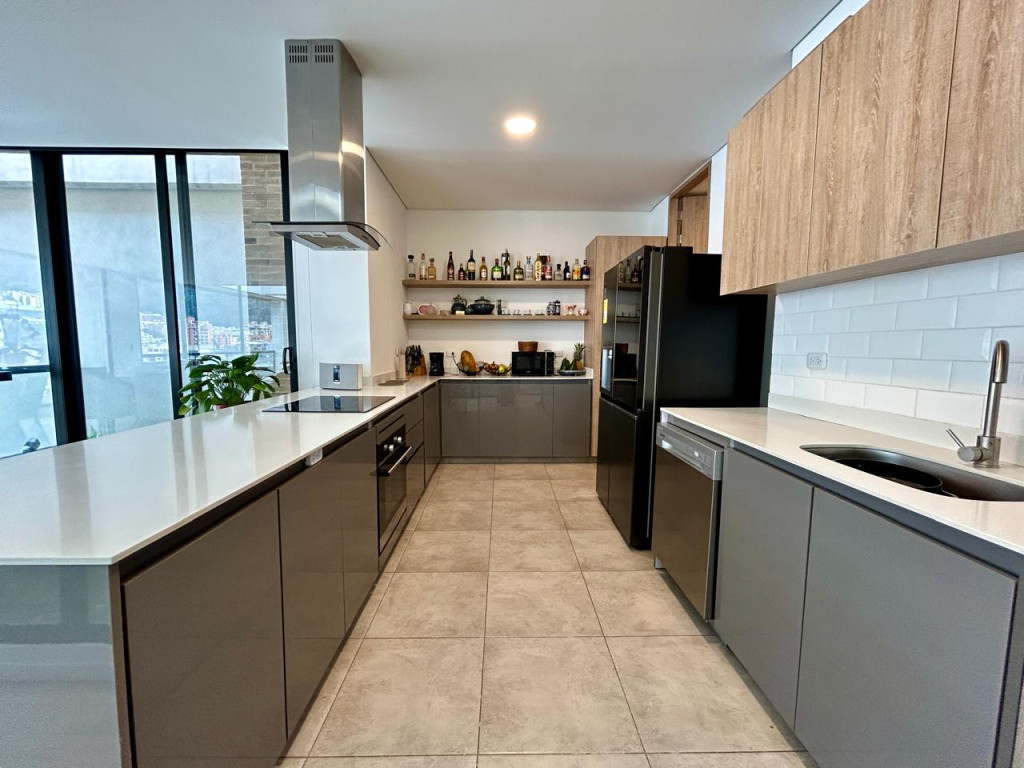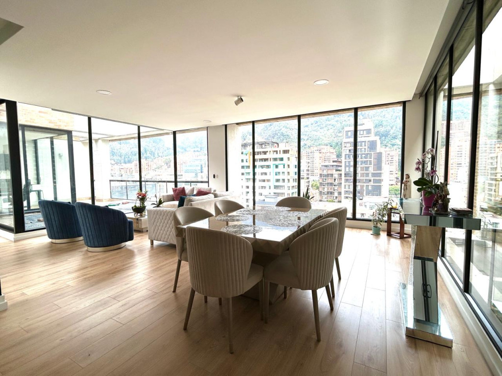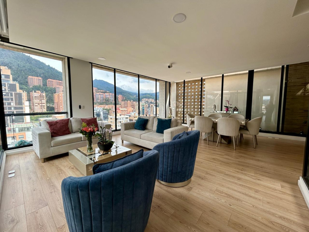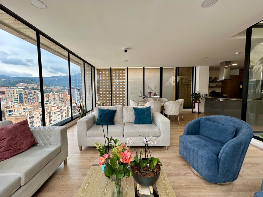 (19837) Ubicado entre la cra. 7 cra. 9 a una cuadra de la calle 127, encontramos este maravilloso penthouse exterior, súper iluminado, con vista a los cerros orientales y al norte de la ciudad. Acabados modernos y de excelente calidad, concepto green con jardines interiores y maravillosas terrazas que permiten disfrutar de momentos en familia y amigos. Son 176.04m2 + 36.12m2 distribuidos en 5 terrazas, una de ellas de 19.34m2. Entrando encontramos un lindo recibidor, baño social, cocina abierta con electrodomésticos de última tecnología, zona de ropas, amplísima zona social. Hacia la zona privada tenemos un estudio o family room con salida a la terraza más grande del apto, tres habitaciones, cada una con baño privado, la principal y una auxiliar con terraza. Dos parqueaderos independientes y depósito. Edificio con vigilancia 24 horas, parqueaderos de visitantes, gym, coworking, zona de bbq, puntos de carga para vehículos y patinetas eléctricas. Facilidad de transporte público. Vías de acceso como la cra. 7, cra.9, calle 127, calle 116.