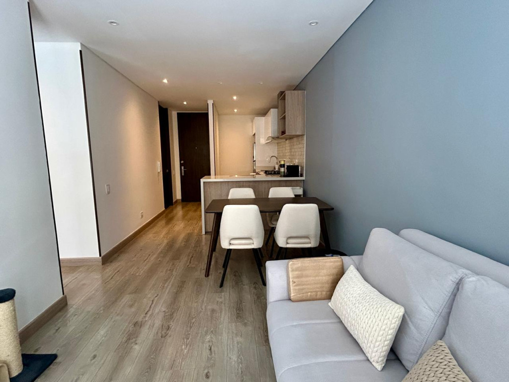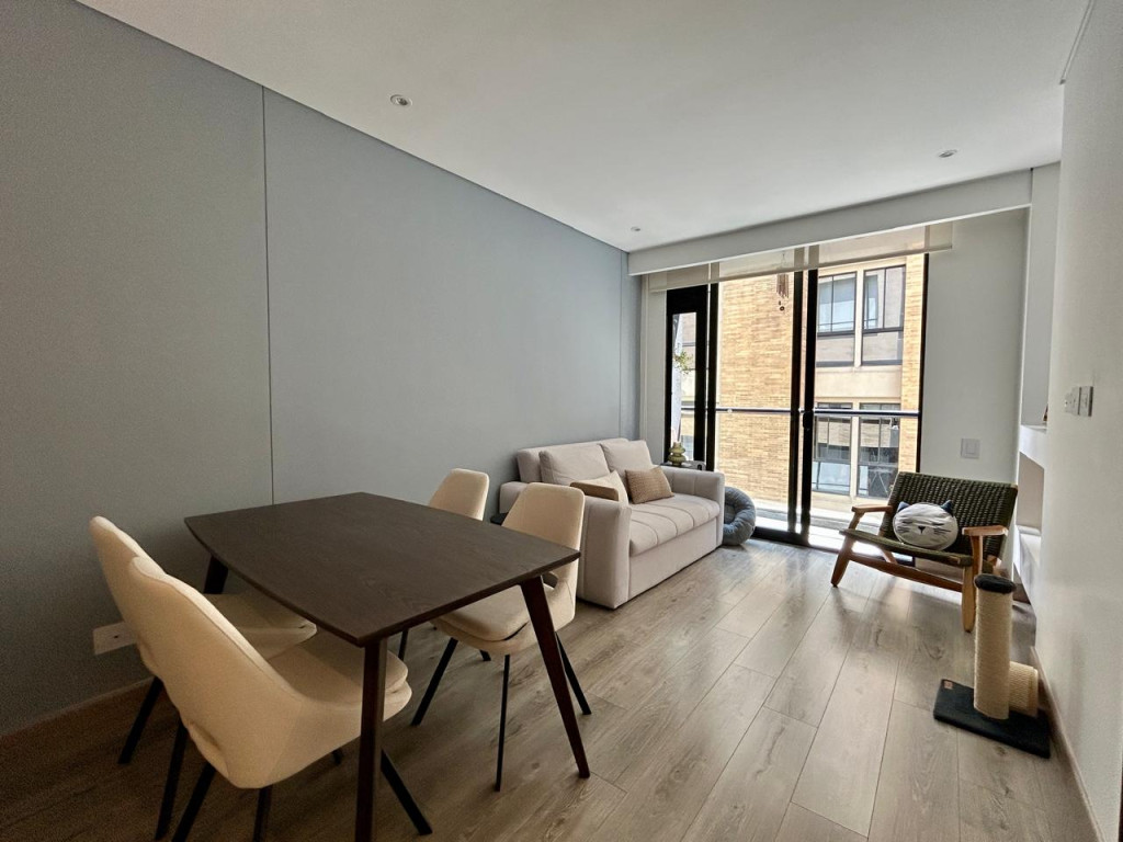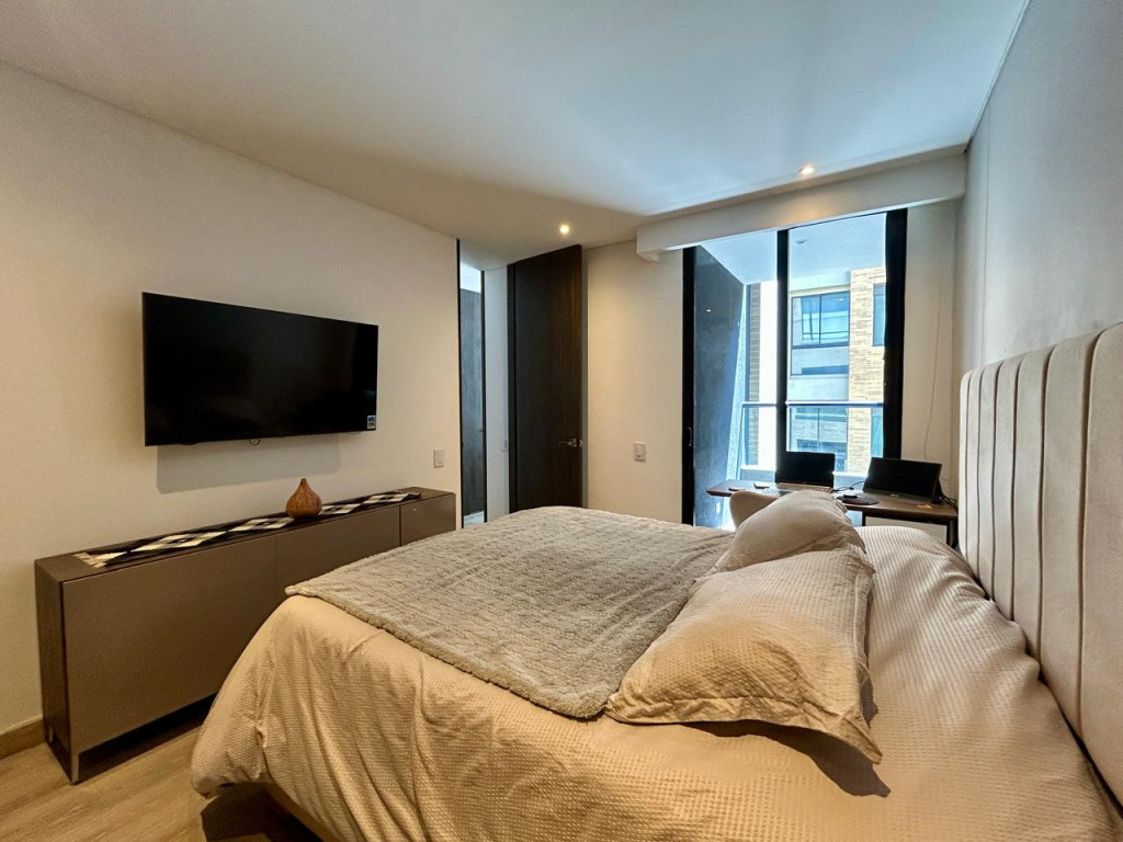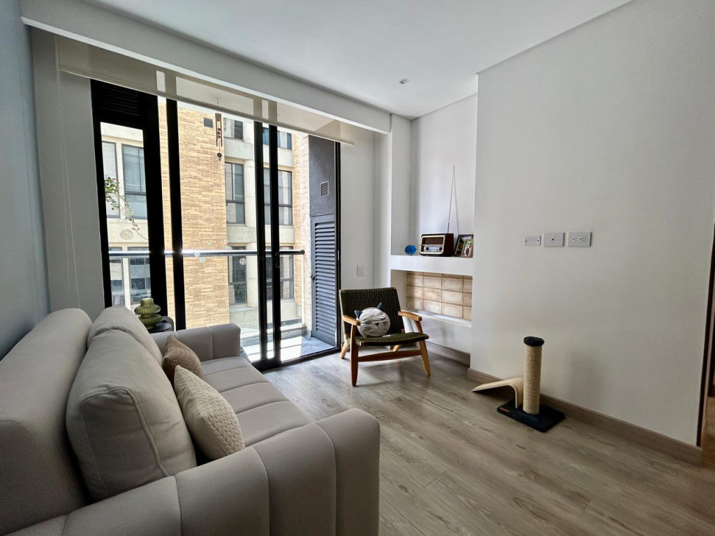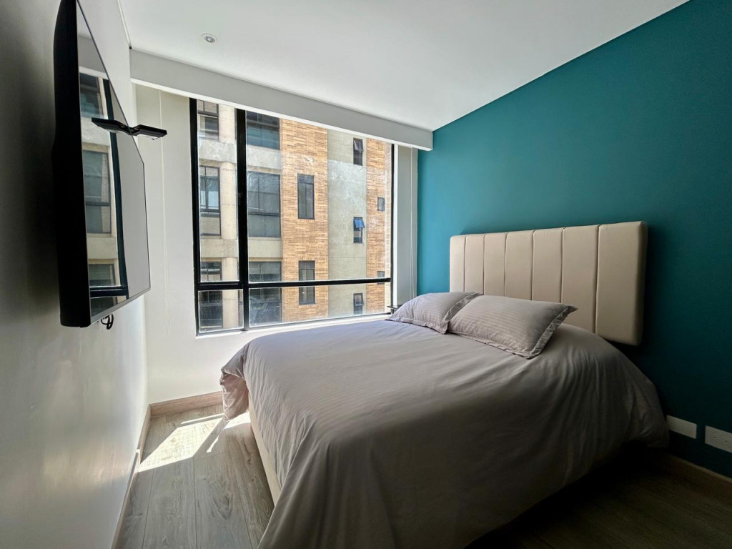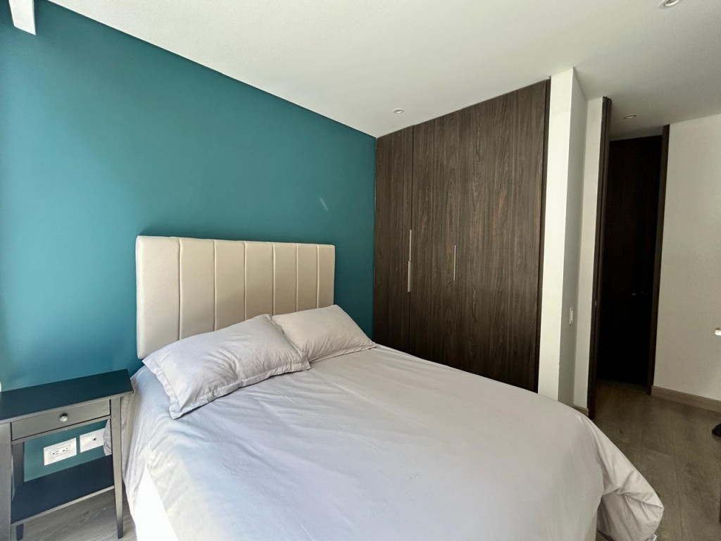 (19850) MODERNO APARTAMENTO EN VENTA EN SANTA BÁRBARA. Ubicado en el tercer piso lateral de un lindo y robusto edificio en Santa Bárbara, frente a un parque, en calle secundaria, se encuentra este lindo apartamento con acabados AAA, con tan solo 3 años de construido. Excelente distribución de los espacios, zona social con salida a balcón, linda cocina abierta, zona de lavandería amplia e independiente. Dos habitaciones, la principal con baño privado y terraza cubierta de 3m2, otro baño para la alcoba auxiliar. Cuenta con garaje cubierto e independiente y depósito. Edificio con terraza bbq, gym, salón social, sala de juegos para niños, vigilancia 24 horas y parqueaderos de visitantes. Ubicado entre la calle 116 y la calle 122, entre Cra. 16 y 19. Cercanía a sector gastronómico, comercial y bancario. Excelentes vías de acceso y facilidad de transporte público.