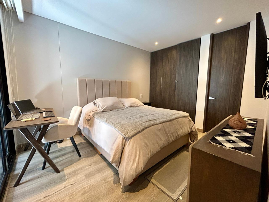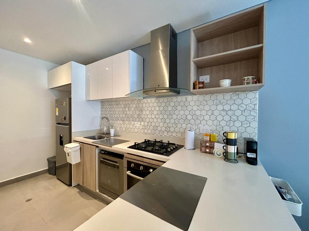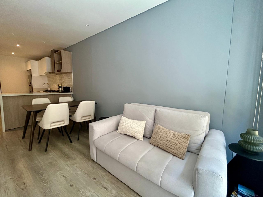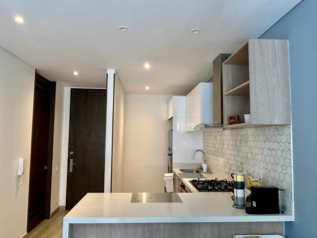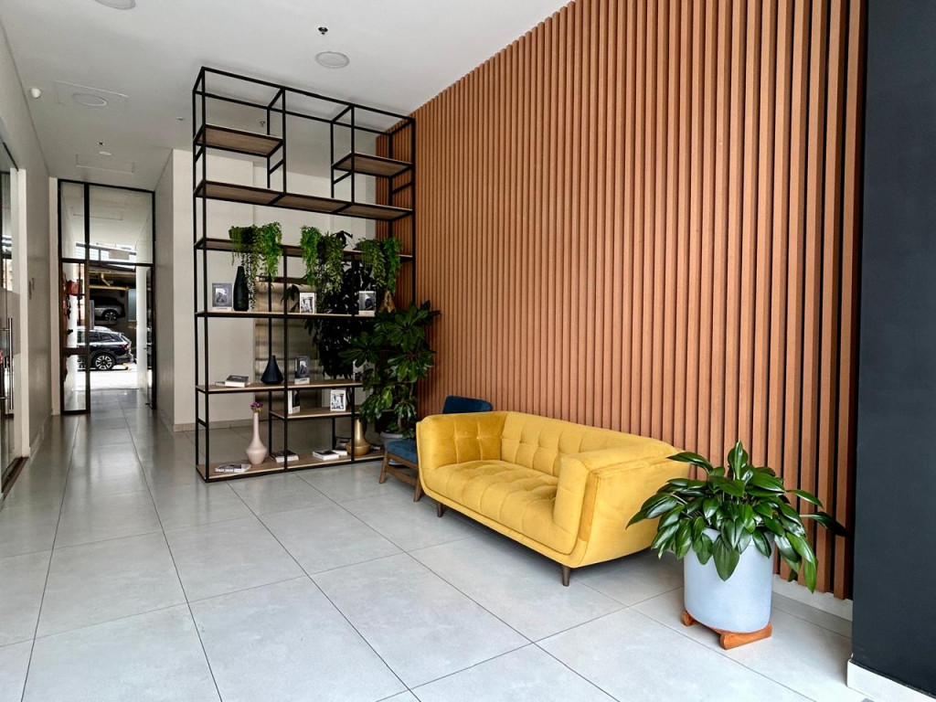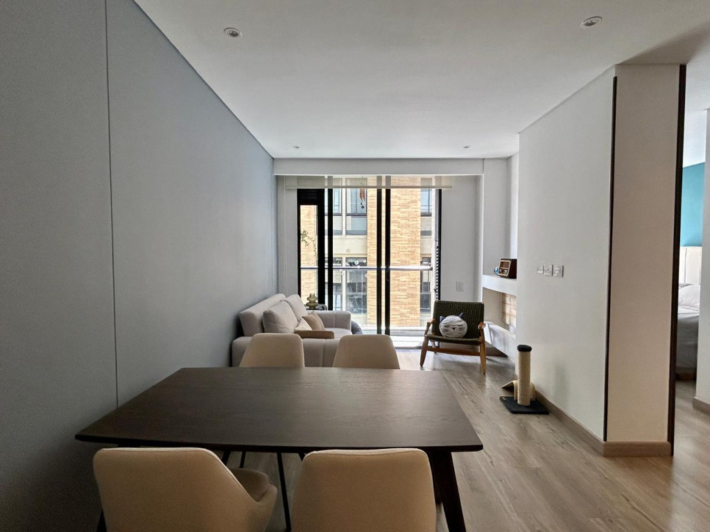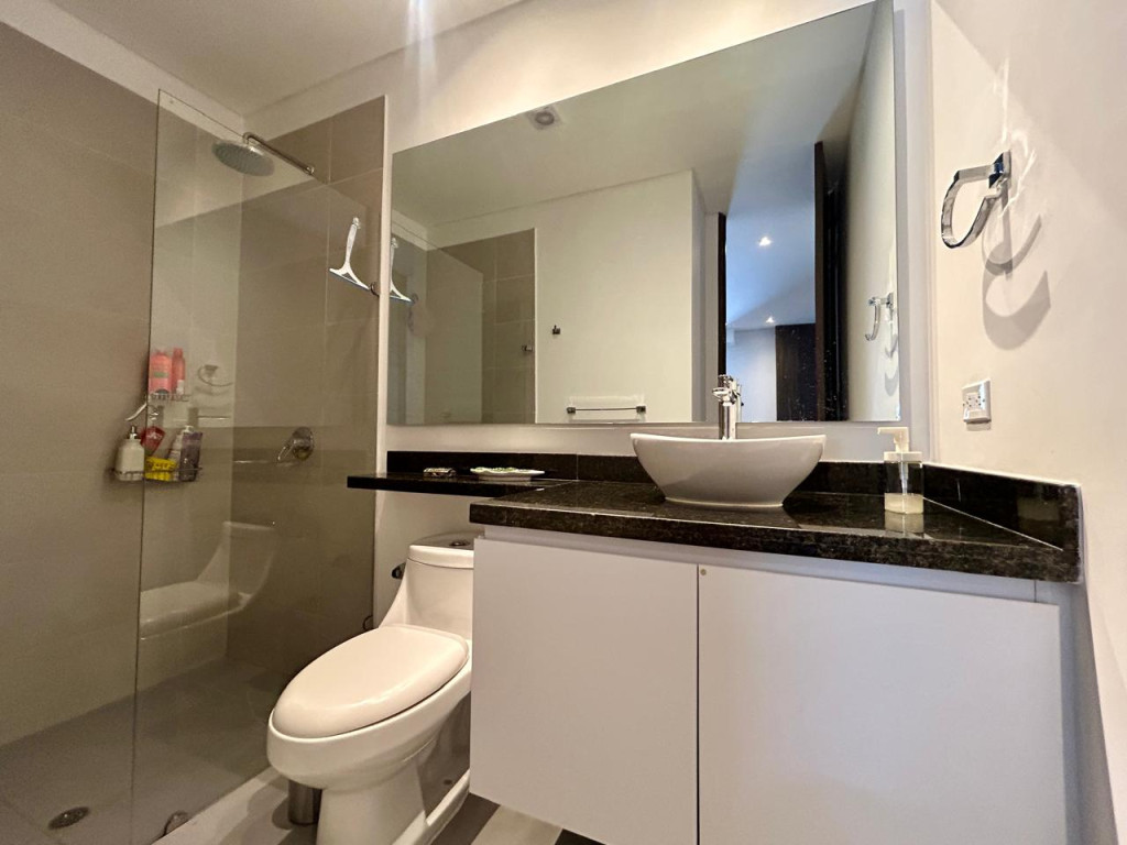 (19850) MODERNO APARTAMENTO EN VENTA EN SANTA BÁRBARA. Ubicado en el tercer piso lateral de un lindo y robusto edificio en Santa Bárbara, frente a un parque, en calle secundaria, se encuentra este lindo apartamento con acabados AAA, con tan solo 3 años de construido. Excelente distribución de los espacios, zona social con salida a balcón, linda cocina abierta, zona de lavandería amplia e independiente. Dos habitaciones, la principal con baño privado y terraza cubierta de 3m2, otro baño para la alcoba auxiliar. Cuenta con garaje cubierto e independiente y depósito. Edificio con terraza bbq, gym, salón social, sala de juegos para niños, vigilancia 24 horas y parqueaderos de visitantes. Ubicado entre la calle 116 y la calle 122, entre Cra. 16 y 19. Cercanía a sector gastronómico, comercial y bancario. Excelentes vías de acceso y facilidad de transporte público.
