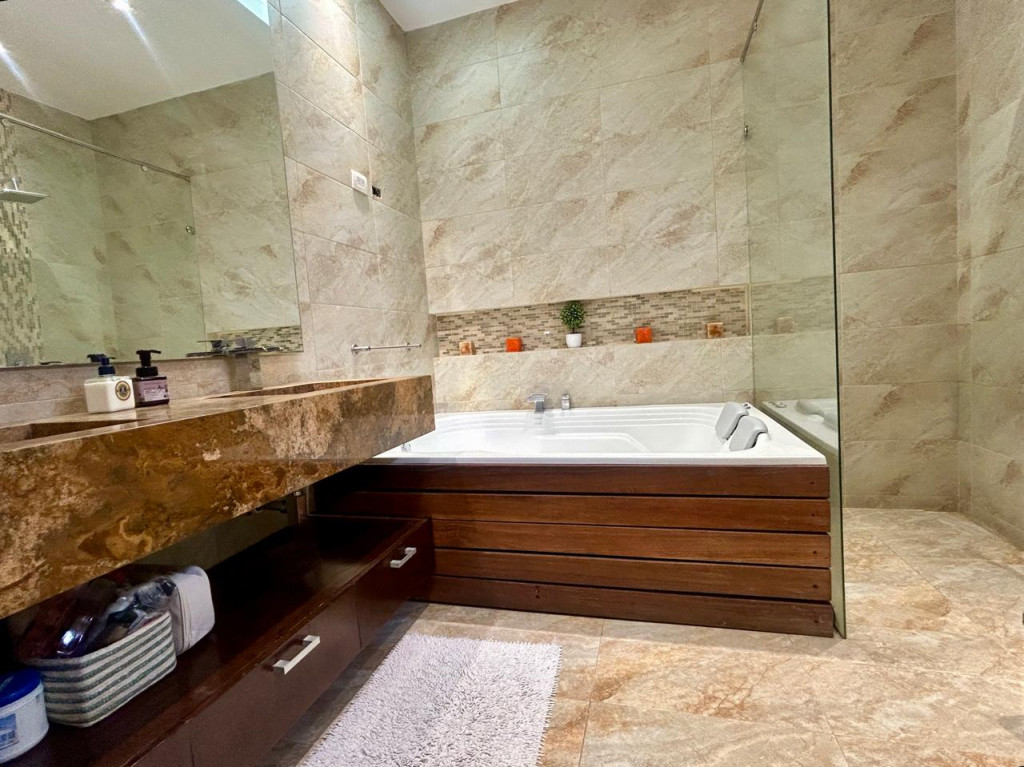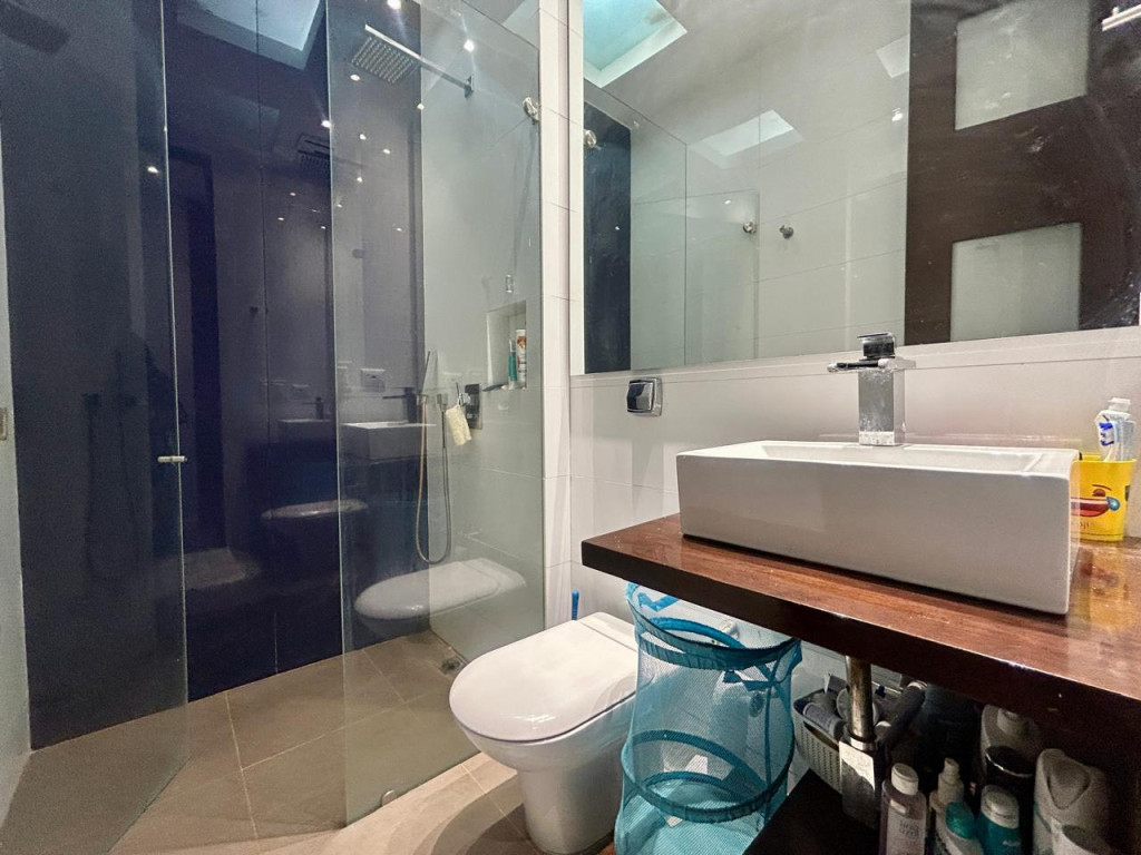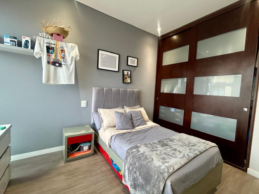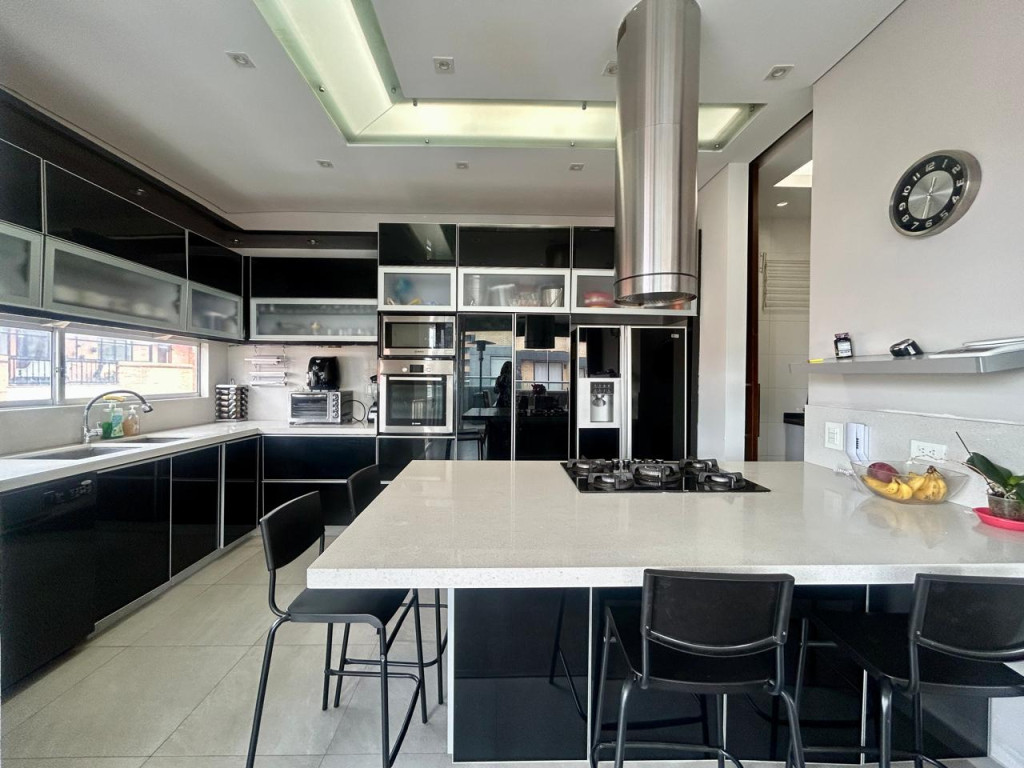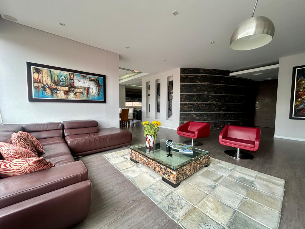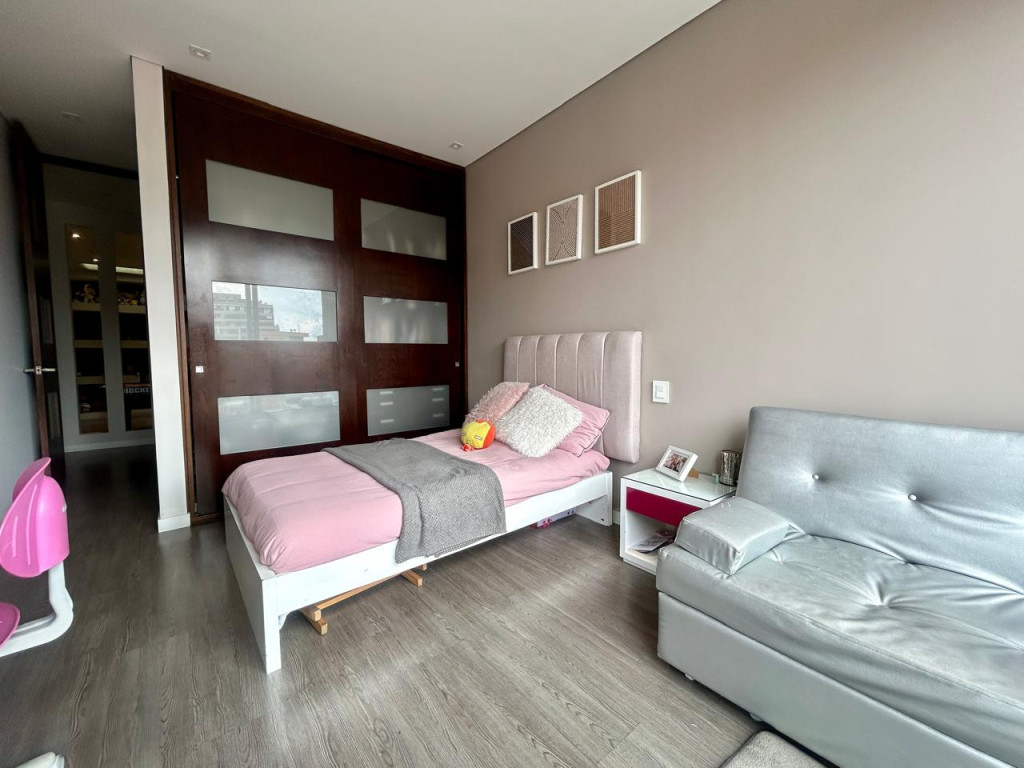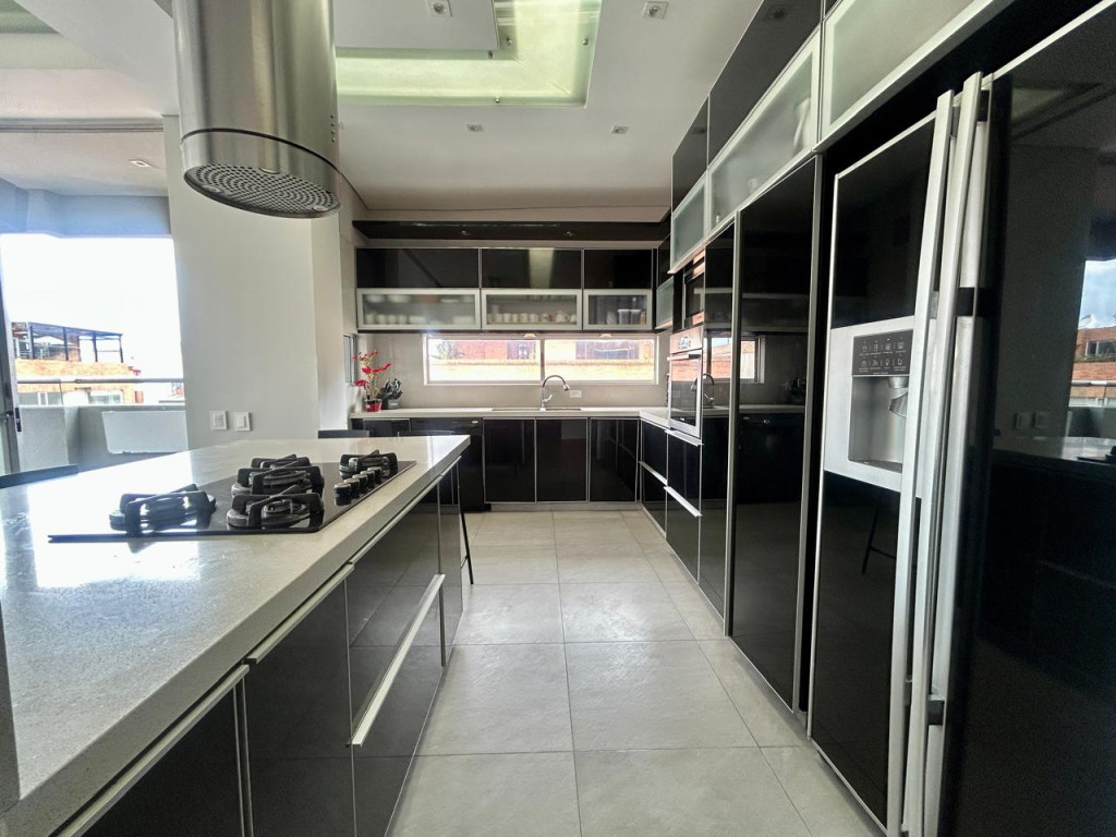 (19829) ESPECTACULAR PENTHOUSE EXTERIOR EN SANTA PAULA. Ubicado en sexto piso esquinero, exterior, sobre carrera, con entrada directa del sol de la tarde. En el tranquilo sector de Santa Paula, rodeado de parques, cercanía a supermercados, zona comercial, gastronómica, bancaria, Unicentro. Amplísima zona social, chimenea a gas, baño social, salida a terraza de 11,77m2, cocina abierta con puerta corrediza, si se quiere independizar. Zona de lavandería y cuarto y baño de servicio. Tres habitaciones, cada una con su baño privado, cuarto adicional de juegos, estar de alcobas y estudio. La alcoba principal cuenta con balcón de 5,86m2, walking closet y baño con jacuzzi. Tiene 5 parqueaderos independientes y 2 depósitos. Edificio con terraza bbq, vigilancia 24 horas, parqueaderos de visitantes y pequeño parque infantil.